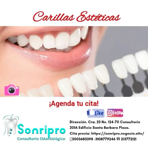 En Sonripro Consultorio Odontológico, clínica dental ubicada en Bogotá, Cundinamarca, nos dedicamos a brindar atención odontológica integral con los más altos estándares de calidad. Nuestro equipo de dentistas especialistas ofrece tratamientos completos: limpieza dental profesional, ortodoncia tradicional e invisible, blanqueamiento dental, implantes y endodoncias, utilizando tecnología de última generación. Con más de 15 años cuidando sonrisas en Bogotá, nos distinguimos por nuestra atención personalizada y ambiente acogedor. Contamos con instalaciones modernas y seguimos estrictos protocolos de bioseguridad para garantizar su tranquilidad. Ya sea que necesite un chequeo rutinario o un tratamiento específico, nuestros odontólogos están listos para atenderle. Reserve …